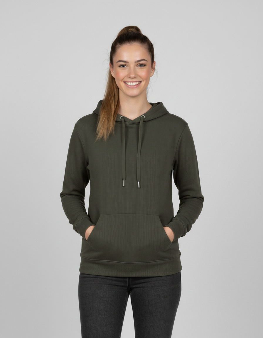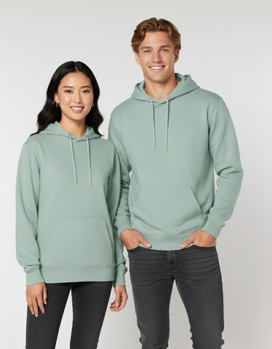 Un material sostenible, cálido y resistente, perfecto para sudaderas icónicas y prendas que acompañan en cualquier ocasión.