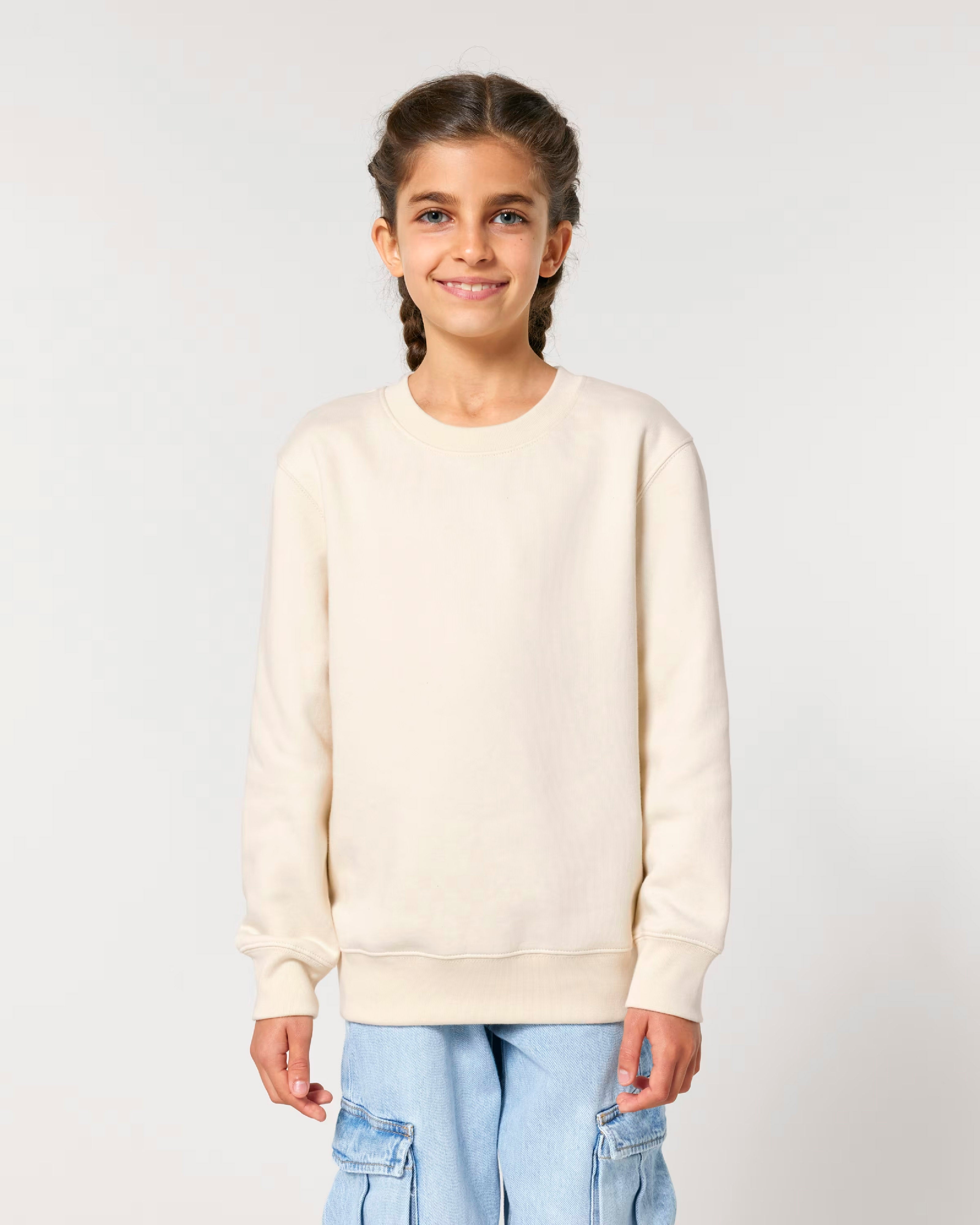 La sudadera sin capucha para niños y niñas combina comodidad, libertad de movimiento y estilo, perfecta para acompañarlos en todas sus aventuras.